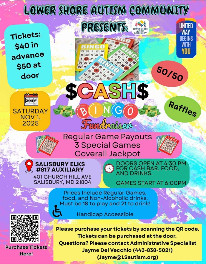 Join Us for an Exciting Evening at the Cash Bingo Fundraiser! Hosted by the Lower Shore Autism Community, to be held on Saturday, November 1, 2025.
