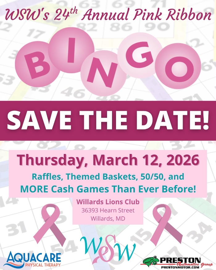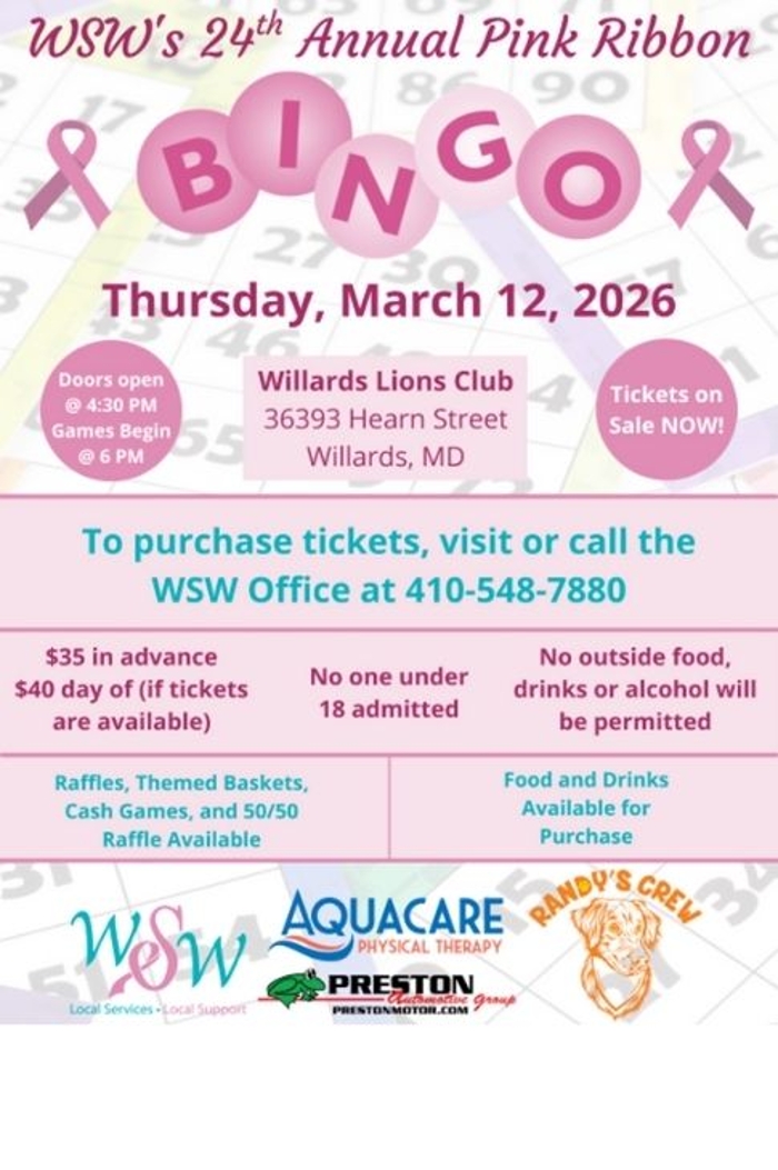 Join them on Thursday, March 12, 2026, for the 24th Annual Pink Ribbon Bingo, proudly hosted by WSW at the Willards Lions Club!