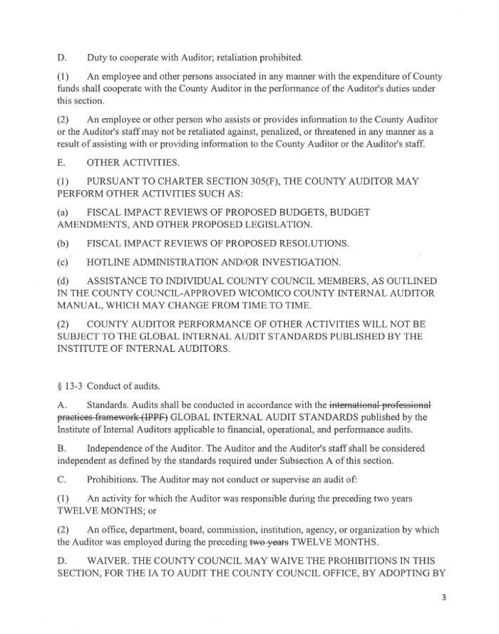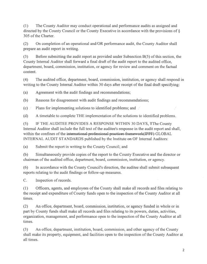 Despite these assurances, the question remains: Does this bill truly subject the County Council to the same level of scrutiny as other departments, including the County Executive's Office?