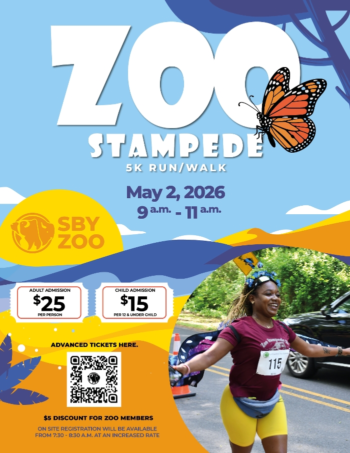 The spring season concludes with the Zoo Stampede 5K on Saturday, May 2. The race begins at 9 a.m. at the Zoo's East Gate. The course travels through the Zoo grounds and Salisbury City Park.